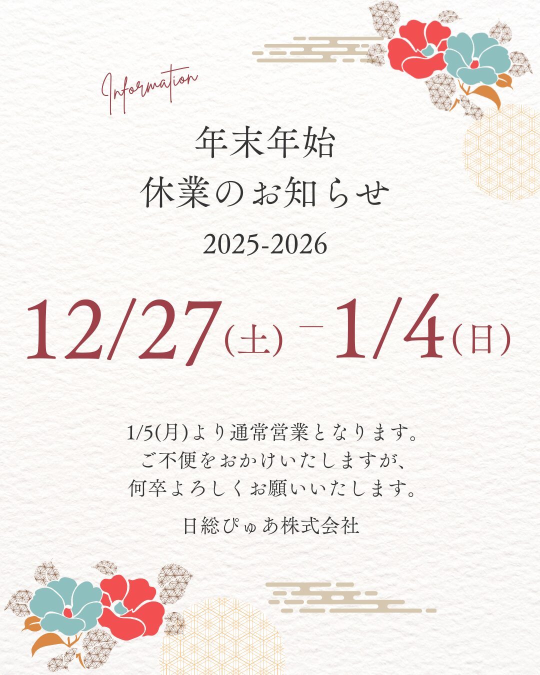 お知らせ年末年始のお休みのお知らせMore -